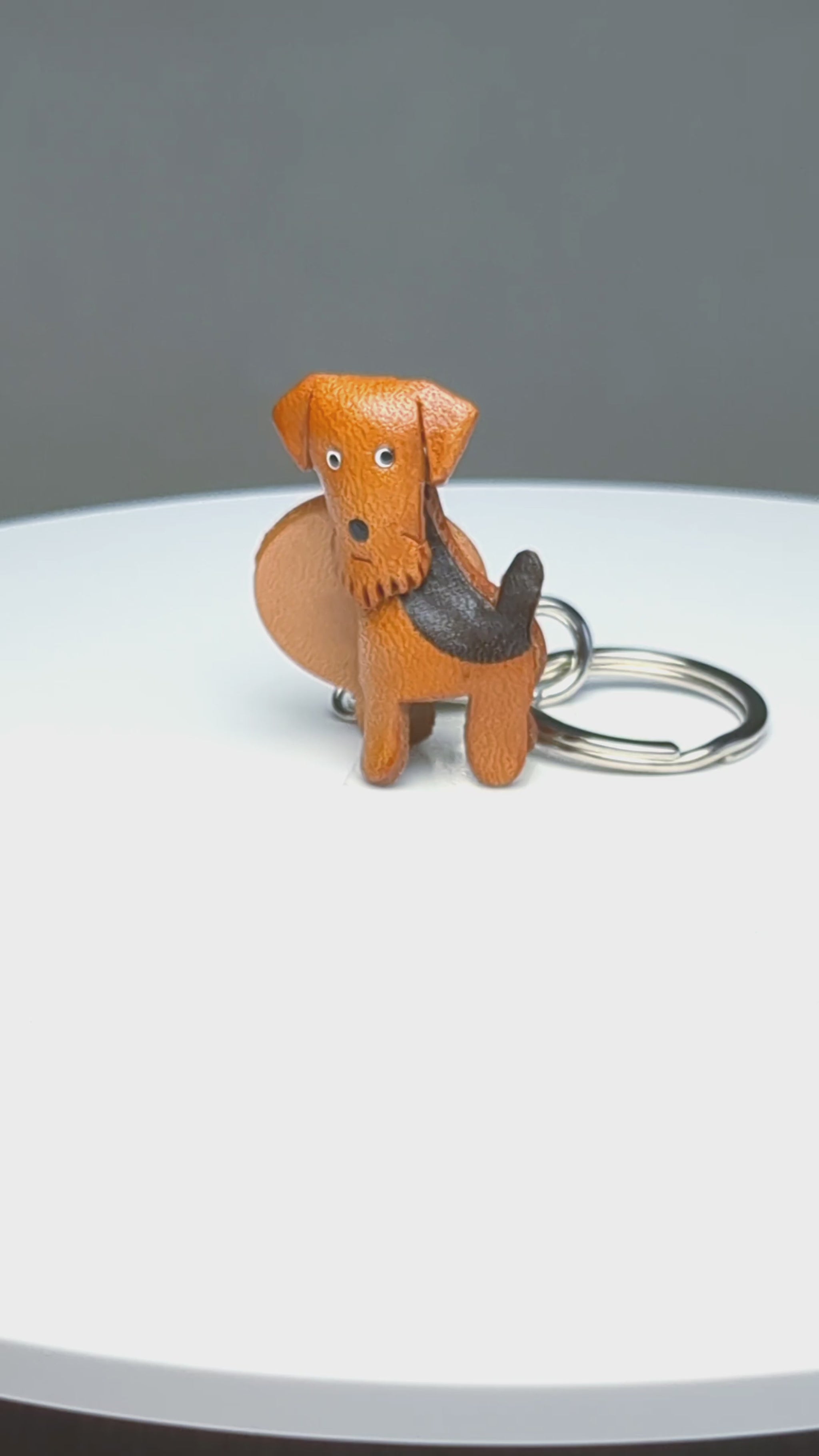 Genuine 3D Leather Airedale Terrier Leather Dog Keychain are hand made by skillful leather craftsmen of VANCA CRAFT INC.Handmade with eco-friendly materials including non-toxic stains.This is a leading leather-crafts manufacturer brand in Japan.Using the finest genuine leather with 110 years of craftmanship.