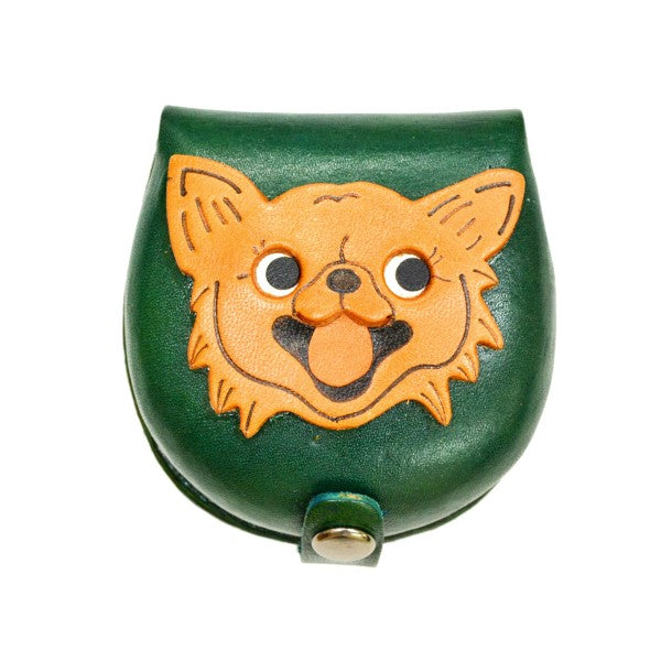 Chihuahua-green Handmade Genuine Leather Animal Color Coin case/Purse #26091-3