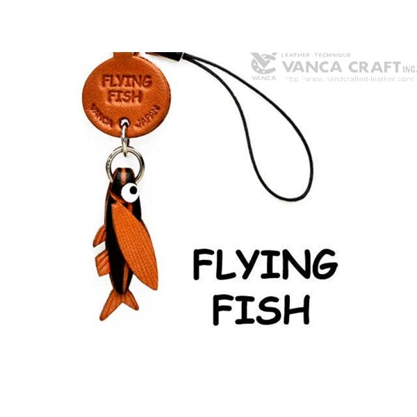 Genuine 3D Leather Flying fish Japanese Leather Cellularphone Charm Fish are hand made by skillful leather craftsmen of VANCA CRAFT INC.Handmade with eco-friendly materials including non-toxic stains.This is a leading leather-crafts manufacturer brand in Japan.Using the finest genuine leather with 110 years of craftmanship.