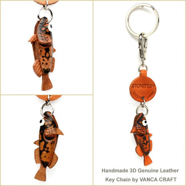 Genuine 3D Leather Stonefish Japanese Leather Keychains Fish are hand made by skillful leather craftsmen of VANCA CRAFT INC.Handmade with eco-friendly materials including non-toxic stains.This is a leading leather-crafts manufacturer brand in Japan.Using the finest genuine leather with 110 years of craftmanship.