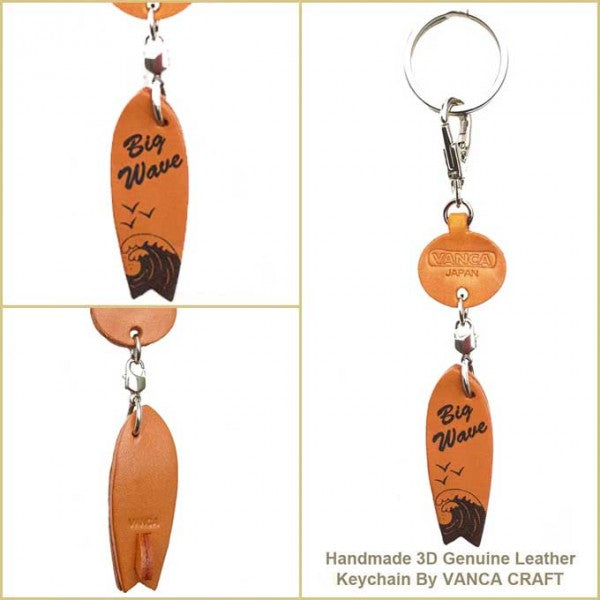Genuine 3D Leather Surfboard Japanese Leather Keychains Goods are hand made by skillful leather craftsmen of VANCA CRAFT INC.Handmade with eco-friendly materials including non-toxic stains.This is a leading leather-crafts manufacturer brand in Japan.Using the finest genuine leather with 110 years of craftmanship.