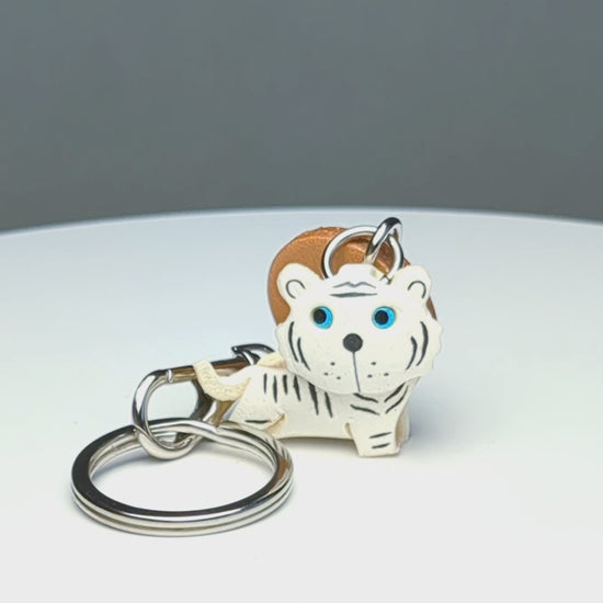 White Tiger Japanese Leather Keychains Animal
